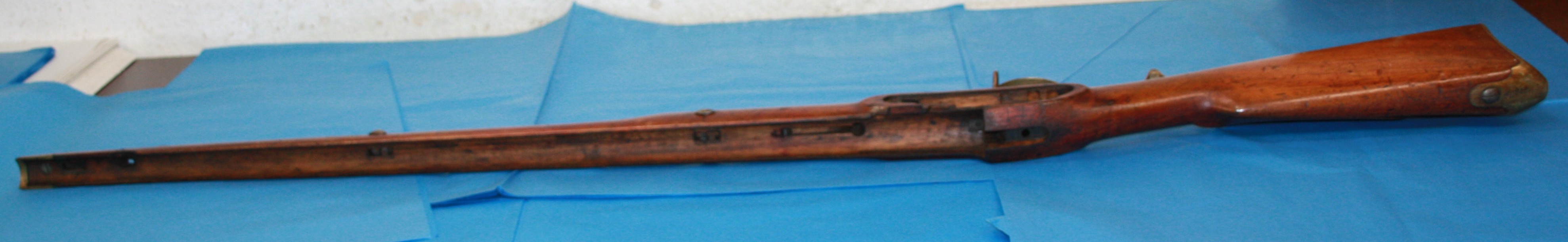 Nussbaum mit Messingbeschläge. Diese Büchse waren in Lüttich von den Schleswig Holsteinern gekauft. Nach der Friedensvertrag waren 2540 an die Dänische Marine geliefert und verwendet als Modell 1853 und später als Modell 1853/66.