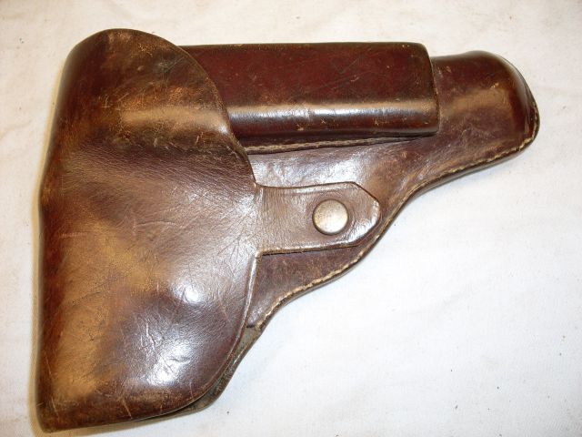 Sie bieten hier auf eine seltene Walther PPK Tasche mit einen Druckknopf als Verschluß, weiter ist das Magazinfach nach unten offen gefertigt eine insgesamt seltene Ausführung vermutlich gefertigt im Zeitraum um 1930. Hergestellt aus kräftigen braunen Rindsleder, keine Stempel zu erkennen. Tasche zeigt altersbedingt übliche Trage und Gebrauchsspuren auf, die beiden Trageschlaufen wurden nachträglich grob neu befestigt. Die Nähte sind fest und im originalen Zustand. Zustand gemäß Fotos. Details und Fragen bitte vor Ablauf der Auktion klären. Farbabweichung durch Blitzlicht möglich. Privatverkauf kein Rückgaberecht und Gewährleistung. Der Bieter erklärt sich durch sein Gebot mit diesen Bedingungen einverstanden. Verkauf und Versand nur innerhalb von Deutschland mit Hermes Paket versichert.