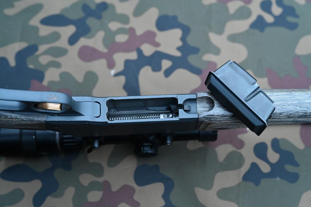 Von grauer Farbe, verfügt die Büchse über eine neue, äußerst widerstandsfähige Oberflächenbeschichtung des Typs "Cerakote", die ihr unerreichte Langlebigkeit sichert. Dank ihrer Visierelemente und einem kurzen Lauf eignet sich diese Waffe ausgezeichnet für Drück- und Pirschjagd.