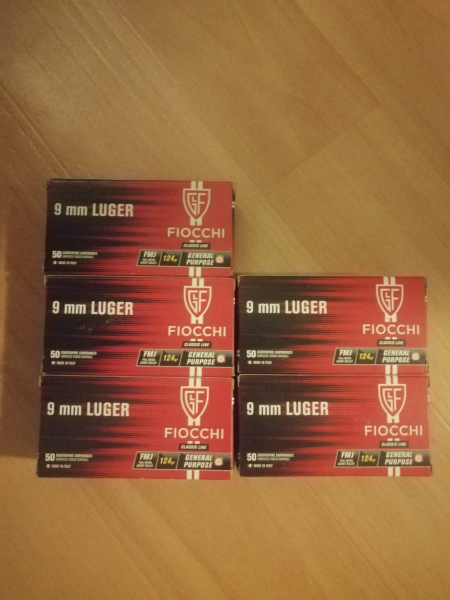 9mm Luger von Fiocchi 124grs FMJ – neu – WBK-pflichtig ------------------------------------------------------------------------------------------------------------------------------------------------------------------------------------------------------------------------------------------------------------------------------------------------------------------------------------------------------------------------------------------------------------------------------- -Zu verkaufen: 9mm Luger von Fiocchi 124grs FMJ /// Sofortkauf für 5 Packungen->Packungsgröße: 50 Patronen also->250 Patronen insgesamt /////////////////////////////////////////////// //////////////////////////////////// -Neue, originale Munition von Fiocchi ///////////////////////////////////////// ///////////////////////////////////////////////////////////////////////////////////////////////////////////////-Ideal für Schießstand, Training, Jagd -Hier einmalig zu einem günstigen Preis! //////////////////////////////////// -!! Kein Versand !! Nur Abholung! -!! Verkauf nur an Berechtigte !! ///////////////////////////////////////////////// WICHTIG – nur mit gültiger WBK+Personalausweis / Jagdschein!/////////////////////// Bitte im Voraus Kontakt aufnehmen und die WBK / Jagdschein Nummern und die Zuständige Behörde nennen damit ich die Angaben überprüfen kann!////////////////////////////////////// Abholung nur persönlich nach Vorlage der Erlaubnis + Personalausweis ////////////////////////////////// Mit dem Kauf willigt ihr auch ein das ich die Erwerbsberechtigung fotografiere und den Verkauf dokumentiere, wie es auch im Handel mittlerweile teils üblich ist! //////////////////////////////////////////// //////////////////////////////!! Kein Versand !!///////////////////////////// !!Nur persönliche Abholung!/////////////////////////////// KEINE AUSHÄNDIGUNG OHNE ORIGINALDOKUMENTE Waffenbesitzkarte/Jagdschein und Personalausweis!!