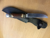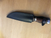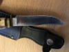 Jagdmesser mit Lederscheide, Top Zustand, auf der Klinge sind ein paar kleine Schrammen, Klingenlänge 13 cm, schwere Ausführung.
