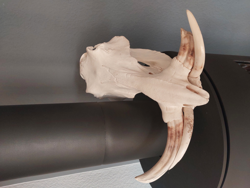 Das Tier wurde von mir in Namibia selber erlegt. Der Keiler hat sein Zielalter erreicht und hat trotz des einen, wohl beim Kampf abgebrochenen Zahns Medaillenstärke. Der Schädel ist gut behandelt und war bisher lediglich verpackt und nicht auf oder ausgestellt.