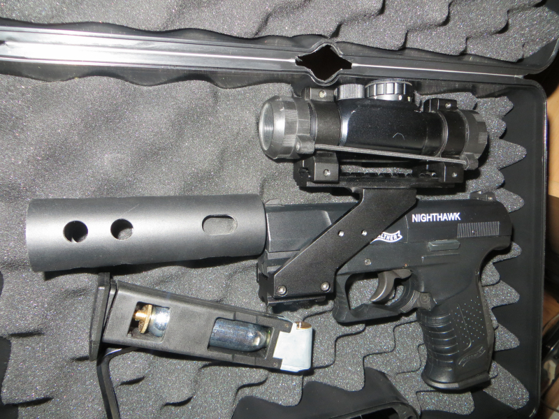 Ich löse wegen Krankheit (Schlaganfall) meine CO2 Waffensammlung auf! Ich biete meine Walther Nighthawk in 4,5 Diabolo an.