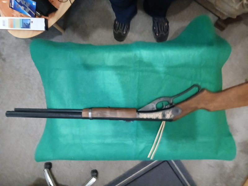 Ich verkaufe ein gebrauchtes Unterhebelspanner-Federdruckgewehr der Marke Daisy Modell 1938 4,5 mm BB Steel mit der Beschriftung "Buffalo Bill". Die Waffe ist gebraucht, schießt aber einwandfrei. Allerdings fehlt die Mündungskappe mit dem Korn. Deshalb Verkauf als defekt. Der Verkauf erfolgt privat. Sämtliche Gewährleistungen, Rücknahmen und Erstattungen schließe ich aus.