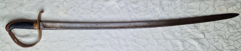 Gesamtlänge ca.104 cm. Klingenbreite am Ansatz ca. 3,5 cm.