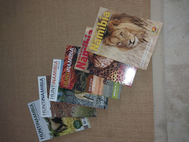 Sie bieten auf 4 Exemplare HuntiNamibia und zwar die Jahresexemplare 2016, 2017, 20 Jahre 1999-2019 und 2024. Als Zugabe zwei schöne Exemplare Travel News Namibia (Gibt es glaube ich nicht mehr in Printform )