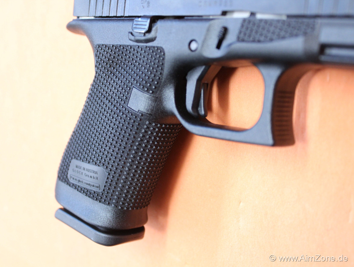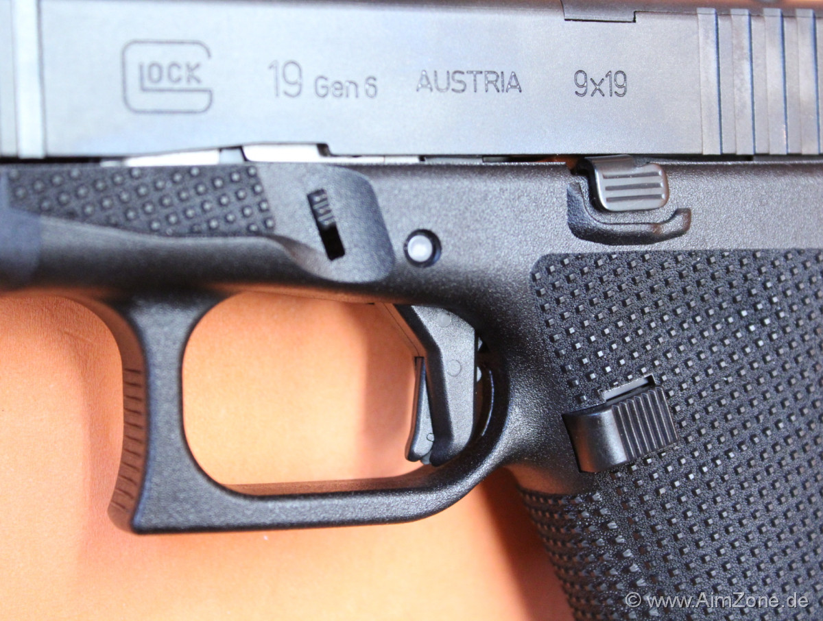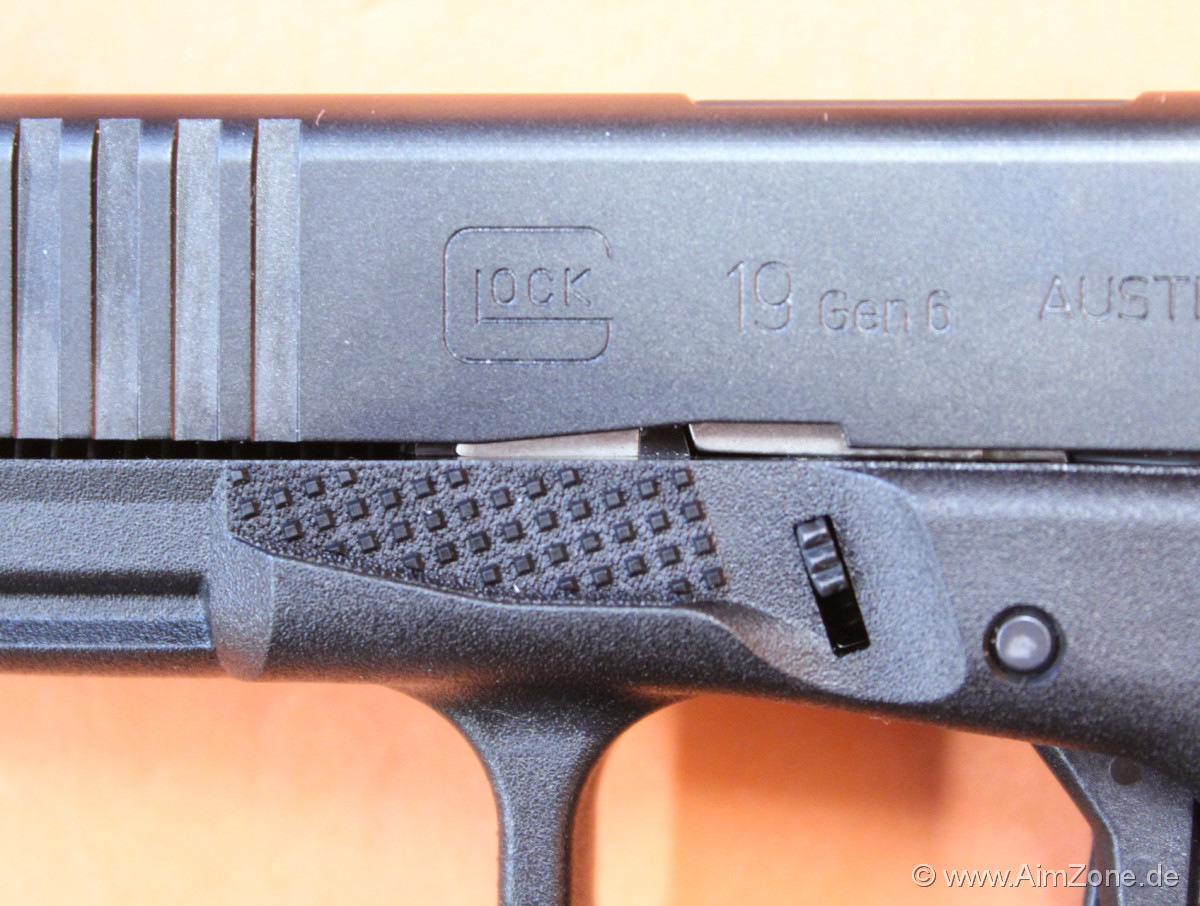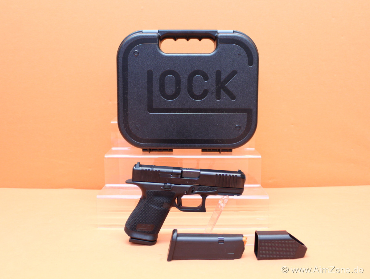 Ha.Pistole 9mmLuger Glock 19 Gen6: OR FS 102mm GMB (Glock Marksman Barrel) Lauf, Verschluss mit OR (Optic Ready System) Schnittstelle für Leuchtpunktvisiere/ Slide Serrations, feststehende Polymer-Kontrastvisierung, Gen6 RTF Polymer-Griffstück mit Zubehörschiene (Weaver)/ Thumb Rest/angetrichterter Magazinschacht/ Enlarged Beavertail, Gen6 Magazinhalter (li/re umbaubar), beidseitiger Verschlussfanghebel, Flat Faced Safe Action Abzug ca. 26N (teilvorgespannt, 2,5kg Steuerfeder), 15-Schuss Magazin. Incl. 3 St. OR Adapterplatten für Leuchtpunktvisiere Trijicon (02)/ C-More (03)/ Leupold (04), 2 St. auswechselbare Griffrücken/ Reservemagazin/ Ladehilfe/ Putzstock/ Putzbürste. Kunststoffkoffer als Transportverpackung.