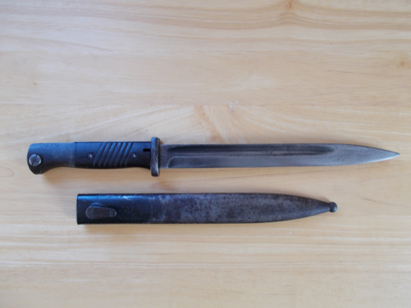 Wehrmacht Seitengewehr 84/98, 3.Mod., nummerngleich "Coppel GmbH 1939, 7762, Klinge mit Anschliff.
