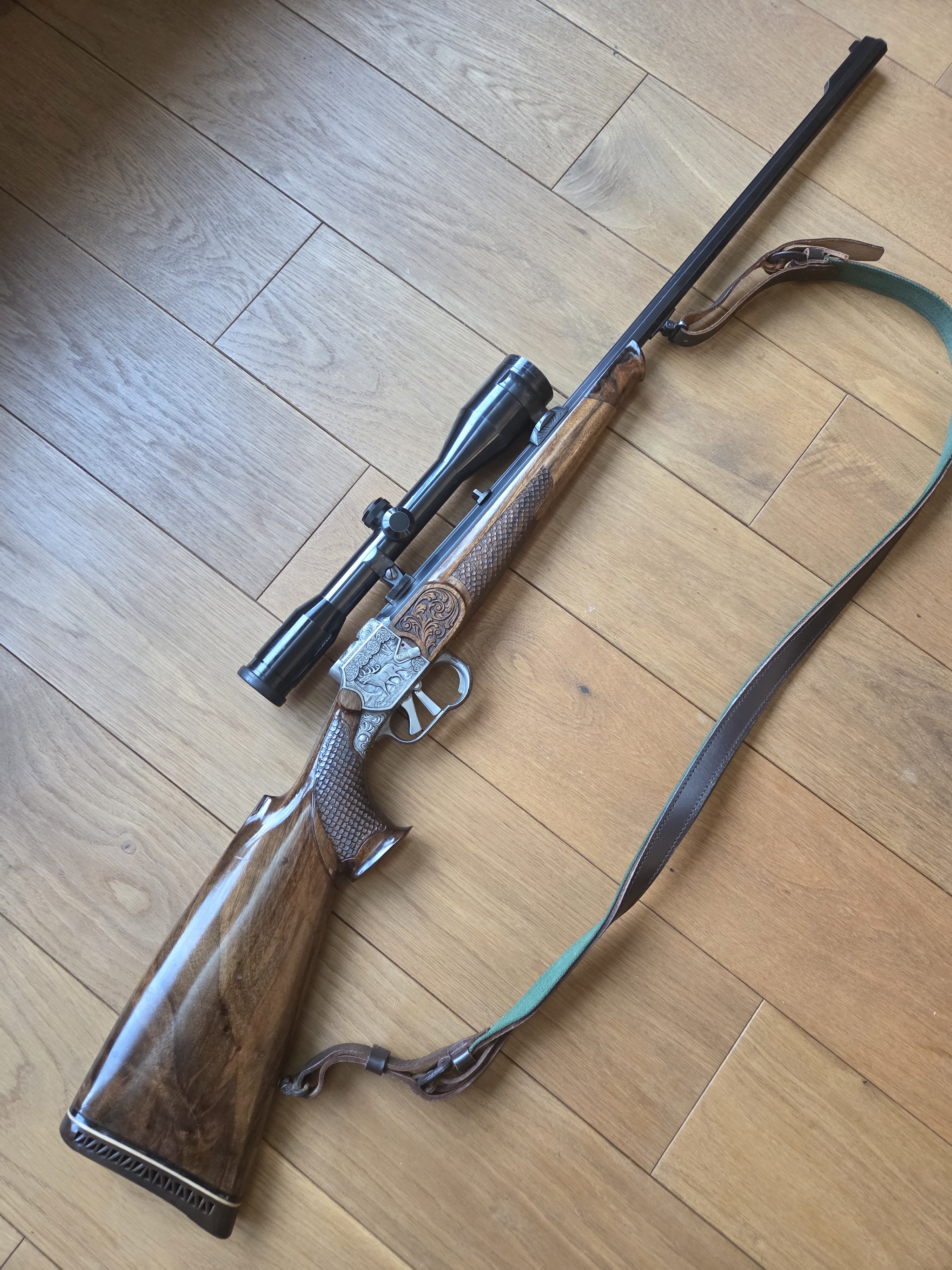 leichte Gebrauchsspuren (vrgl. Fotos, diese sind Teil der Beschreibung): leichte Druckstellen am Schaft, leichte Gebrauchsspuren am Zielfernrohrtubus und den übrigen Metalloberflächen