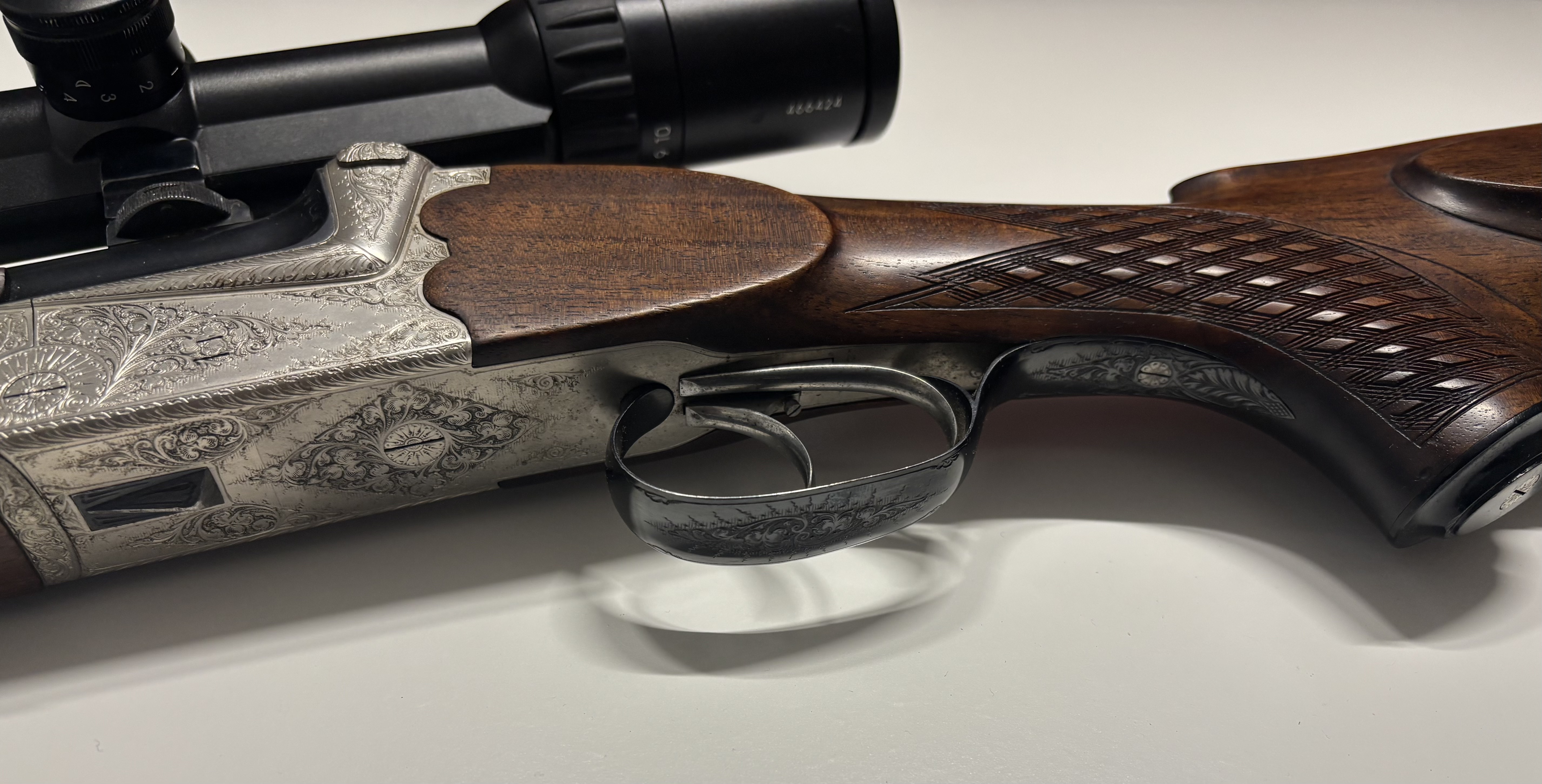 Zum Verkauf steht eine hochwertige Fehrlacher Bockbüchsflinte (BBF) aus der Werkstatt von Josef Hambrusch, gefertigt in Ferlach, bekannt für erstklassige Handwerkskunst, Präzision und edle Schäftungen.