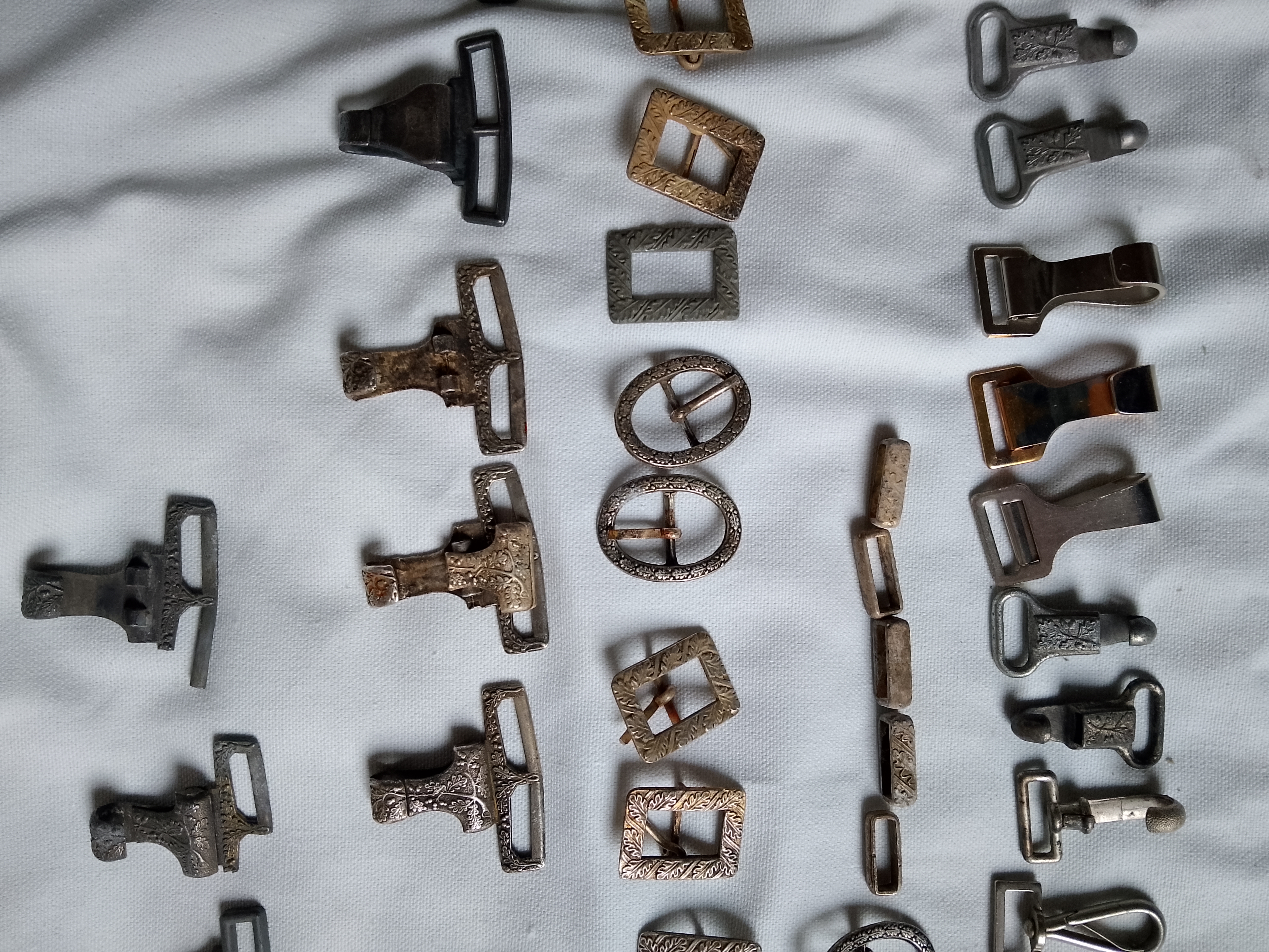 metallteile aus verschiedenen Materialien Zink Neusilber Messing Eisen und so weiter, alle Stoffteile sind UV negativ.