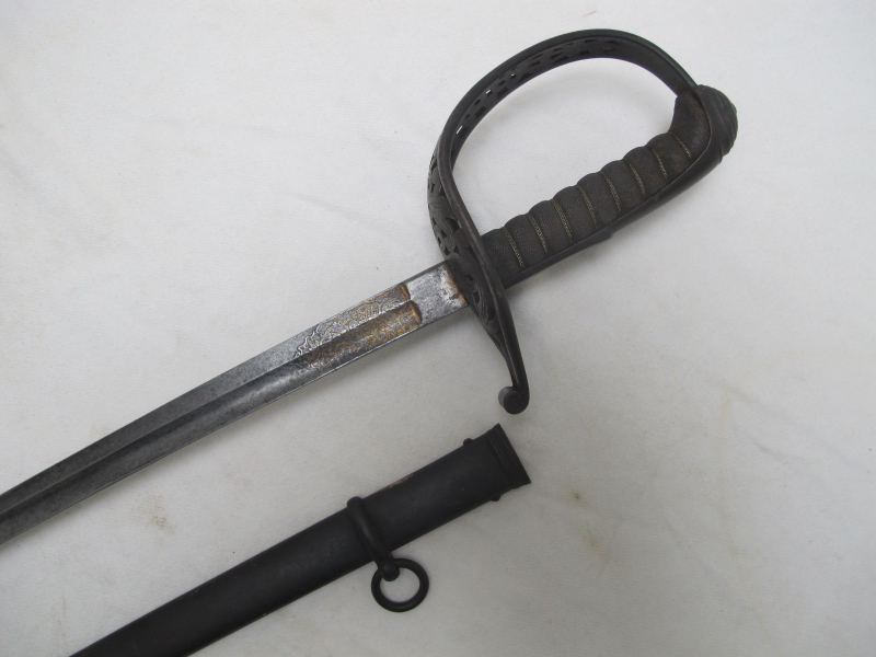 Selter badischer Kavallerie Säbel für Offiziere Modell M1859 (nach österreichischem Vorbild). Klinge signiert „DAMAST STAHL“ und Hersteller „Gerke (?) & Spelier in Carlsruhe“. Alles zusammengehörig. Gesamtlänge ohne Scheide 95 cm, Klingenlänge 80,5 cm, Klingenbreite 2,2 cm. Siehe Fotos. Privatverkauf.