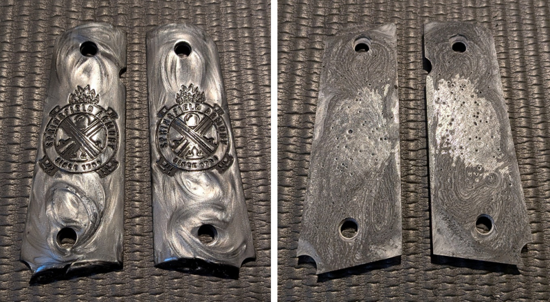 Kunststoff Griffschalen für 1911 und baugleiche, grau + Schlieren, Springfield Logo