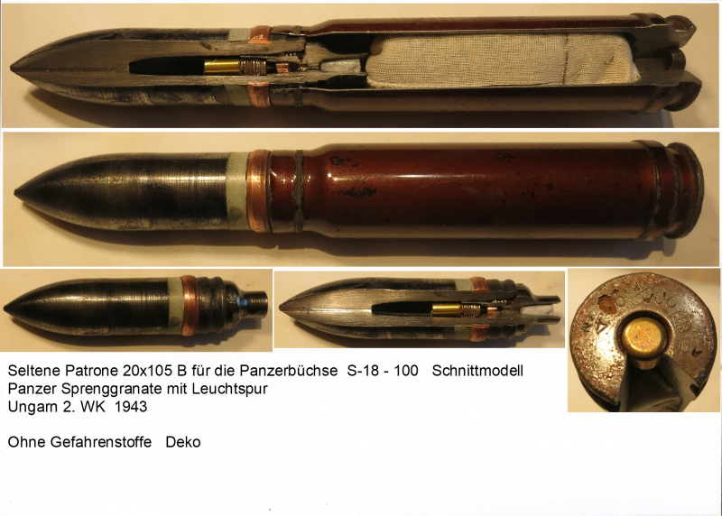 Abzugeben.. Patrone 20x105B für die Panzerbüchse S-18-100 ,, Pz.Gr. L`Spur,,, Schnittmodell,,, Privater Verkauf kein Umtausch oder Zurücknahme. Keine Garantien oder Gewährleistung. Ohne Gefahrenstoffe Deko,,, Beschreibung siehe Bild,,, No Paypal