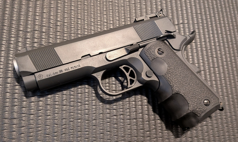 Schöne Kompaktversion eines M1911 mit kurzem Schlitten und kürzerem Griffstück, "Officer" Ausführung, wie es sie auch bei den scharfen 1911ern gibt