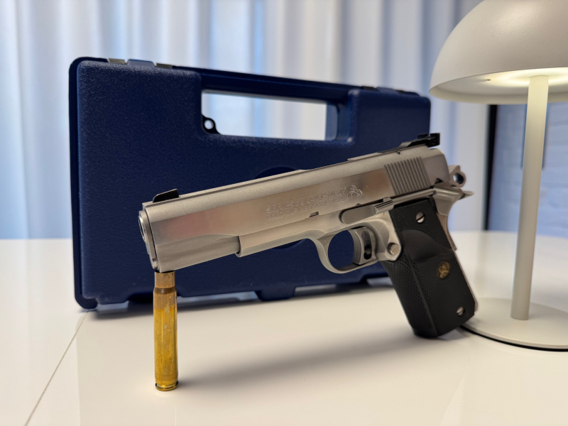 Dieses Modell gilt seit Jahrzehnten als Referenz im sportlichen Großkaliberbereich und ist heute zunehmend gesucht, da echte Colt-Gold-Cup-Modelle in diesem Zustand immer seltener angeboten werden.