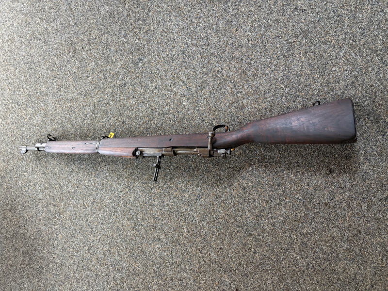 Zu verkaufen ist eine Repetierbüchse Modell 1903, Hersteller Rock Island Arsenal, im Kaliber 30-06 Springfield. Die Waffe ist in einem, vom Alter her, guten Zustand. Die Brünierung ist zwar zum Teil abgegriffen, aber es ist kein Rost sichbar. Der Lauf spiegelt, die Züge sind gut. Besichtigug ist möglich und erwünscht. Der Original-Riemen gehört auch dazu.