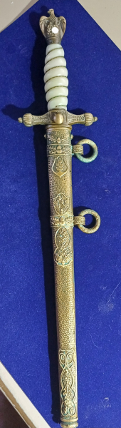 Marinedolch mit Sonderscheide und beidseitiger Klingen Ätzung.Messing Scheide