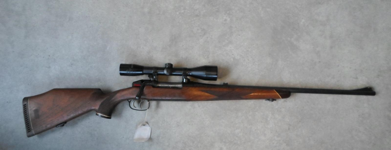Mannlicher Schönauer Repetierbüchse M 72, Kaliber .308 Winchester, gültiger Beschuß, Zielfernrohr Kahles Helia Super 6 S 2 ( 6 x 42 ), Absehen 1, Lauf gut, deutscher Stecher, Gummirückschlaghinderer, Gesamtlänge 110 cm, Schaft / Abzug 36 cm, Lauflänge 60 cm.