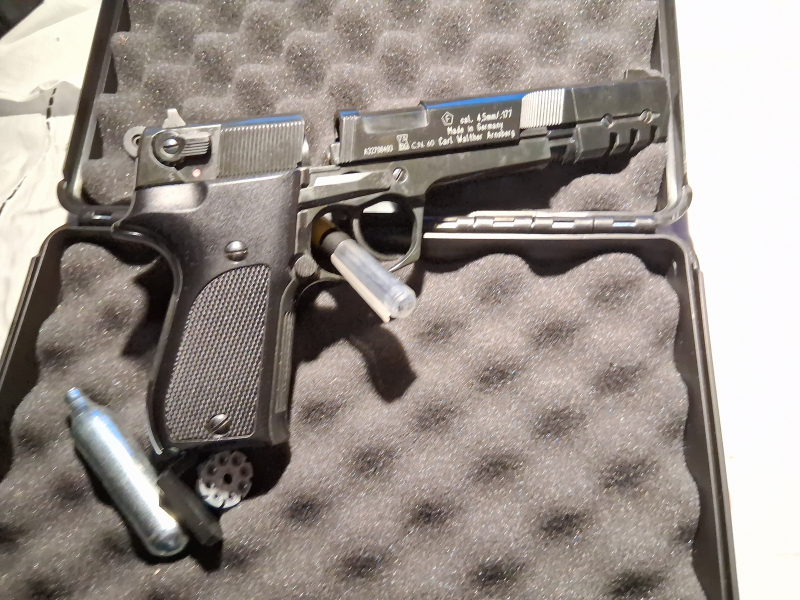 Biete hier ereut etwas aus meinen Konvuluteinkäufen. +++ Walther Competition mit 2 neuen Trommeln. Cal. 4,5mm (.177). +++ Die waffe ist dicht und schiesst ohne Probleme. 1x unbenutzte Kartusche und 2 gefüllte Trommeln liegen bei. +++ Die weitere Beschreibung dieser Waffe bitte im Internet, z. B. muzzle.de, nachlesen. +++ Als Privatverkäuferin biete ich keine Garantie oder eine Rücklieferung. +++ Die Fotos sind Bestandteil dieses Angebotes, +++ Betrifft diese Waffe und deren Zubehör. +++ Versand generell per DHL und Info der Sendungs-ID. +++ Kein Versand auf eine Insel. +++ Nur Deutschland Versand. +++ Kann gern abgeholt werden. +++ Frei ab 18j.