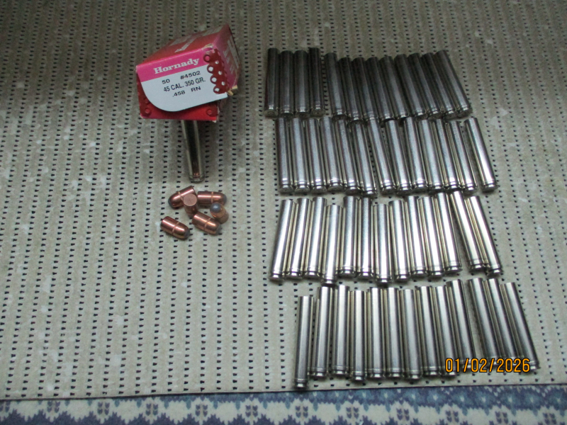 50 stück geschosse von hornady für kaliber . 458 winchester magnum - 350 grains round nose - dazu 53 stück vernickelte hülsen von federal - 1 x abgeschossen - beste ware - top !