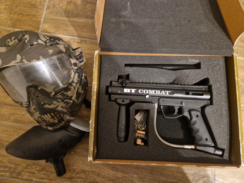Bei dem Markierer handelt es sich um den BT-4 Combat, Kaliber 68. Er ist in einem guten Zustand mit leichten Kratzern am Rohr und Kimme.