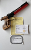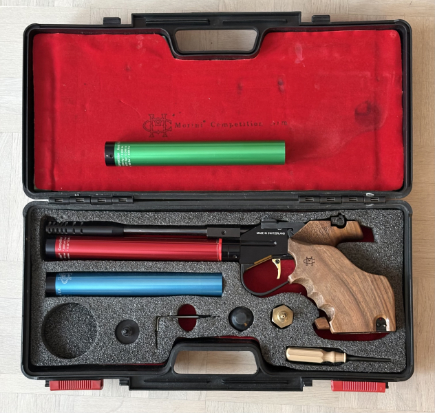 Sie wird mit 3 Kartuschen geliefert. 2x die Originalen mit 300 bar ( halten den Druck ), die aber wahrscheinlich abgelaufen sind ( steht halt nichts drauf ) und einer 200 Bar Kartusche, die noch Tüv bis November 2028 hat ( Sie ist von 2008, aber es steht drauf, daß sie 20 Jahre Tüv hat und hat eine leichte Macke ) Sie hat einen L Griff, Rechtshand. Laufgewicht, Werkzeug und Pressluftadapter sind auch dabei, siehe Fotos