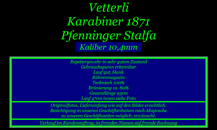 Vetterli Karabiner 1871 / Pfenniger Stalfa Kaliber 10,4mm