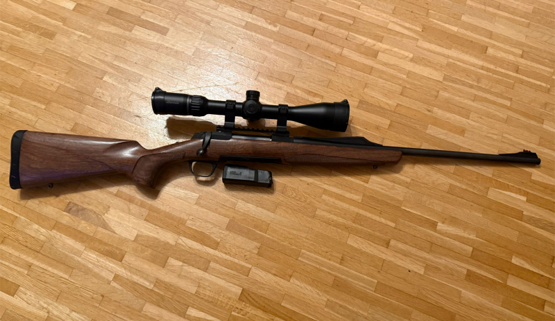 Auf der Waffe ist eine Optik der Marke Burris Four XE 6-24x50mm, inkl. Originalverpackung und Rechnung und 30 Jahre Garantie verbaut, die sich auf einer Picatinny Schiene für FN-Browning X-Bolt befindet.
