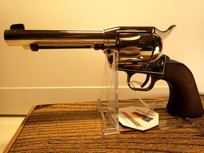 Der Revolver ist neu und ungeschossen. Bei mir reines Vitrinenstück. Bei diesem Weihrauch sind alle funktionsteile noch aus Stahl. Die Oberflächen verarbeitung ist Top und der Schlossgang wie bei einem echten, mit 1100g ein echter "Brocken" der super in der Hand liegt.