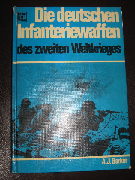 Die deutschen Infanteriewaffen des 2. Weltkrieges von A.J. Barker aus dem Motorbuch Verlag Stuttgart. 1. Auflage 1974. Gebundene Ausgabe mit 79 Seiten und zahlreichen s/w Fotos. Gelesener Zustand (Einband bestoßen, Vorbesitzer Stempel im Einband) mit zahlreichen s/w Fotos, Zeichnungen, Tabellen und einer Liste der Codebezeichnungen der deutschen Handfeuerwaffen - Hersteller.