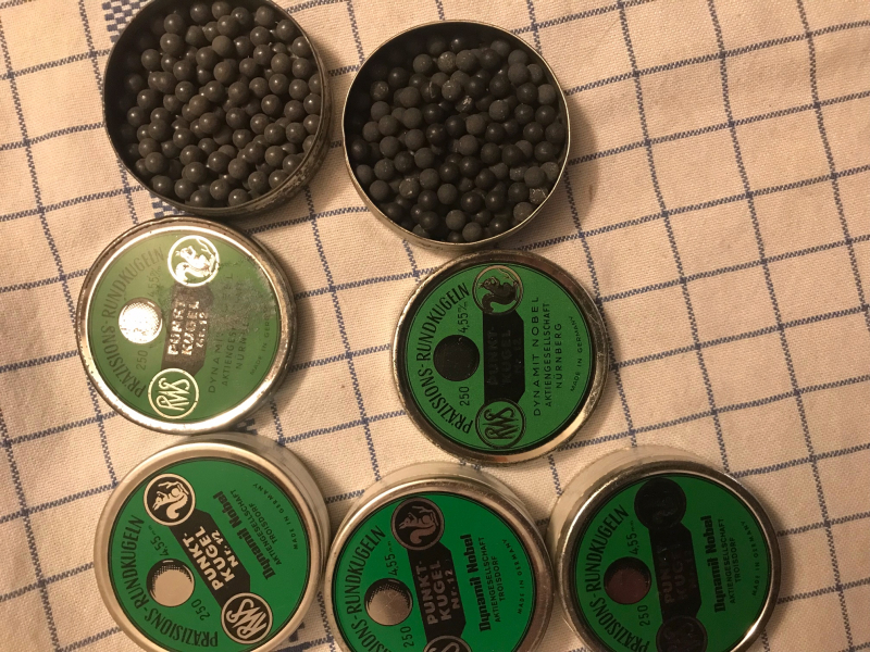 Von Privat aus einem Nachlass - RWS Präzisions Rundkugeln Nr 12 - 4,55 mm- 3 Dosen noch versiegelt - 2 Geöffnet / jeweils über halb Voll - Ältere Kugeln !!! . Von Privat, daher keine Garantie oder Rücknahme - Versandpauschale 6 Euro -