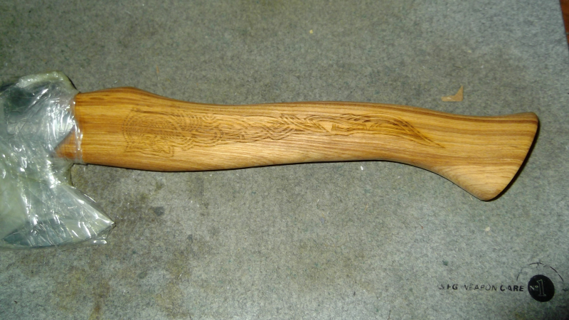Verkaufe hier ein neues,ungebrauchtes Wikingerbeil mit schönem Holzstiel.Auf den Stiel wurde beidseitig die Mitgaardschlange "graviert"?