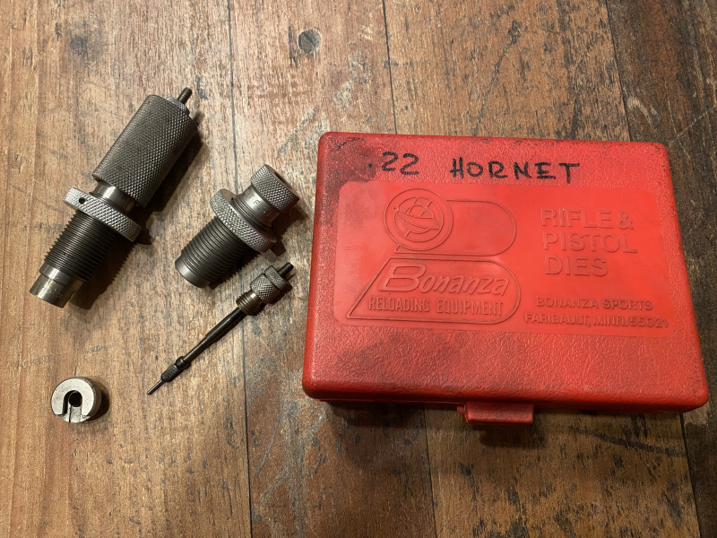 Versteigert wird ein Benchrest Matrizensatz von Bonanza , für das Kaliber 22 Hornet. Der Satz besteht aus der FL Rekalibrier u. der Setzmatrize. Die Rekalibrier Matrize hat einen höhenverstellbaren Innenkalibkierer. Die Matrizen haben Gebrauchsspuren, sind aber technisch absolut funktionsfähig. Ich habe erst kürzlich noch Patronen damit geladen. Mit dabei ist der passende Hülsenhalter.