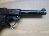 Pistole 08, S/42, 1938, WaA 63, Kaliber 9 mm Luger. Lauf gut, Felder und Züge deutlich. Soweit ersichtlich nummerngleich, auch der Schlagbolzen, bis auf das Magazin. Das Magazin ist nicht original. Die Pistole wurde einmal überlackiert. Die Griffschalen wackeln. Kein gültiger Beschuß, Verkauf erfolgt nur an Händler oder Sammler.