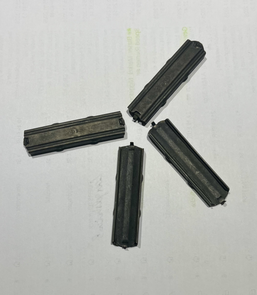 4 Ladestreifen für Springfield 1903 A1 und A3 für Kaliber .30-06 Springfield, vermutlich aus Kriegsfertigung da phosphatiert.
