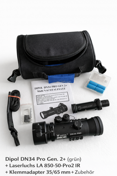 Zum Verkauf steht ein hochwertiges Nachtsichtvorsatzgerät Dipol DN34 Pro Gen.2+ (grüne Röhre) inklusive umfangreichem Zubehör.