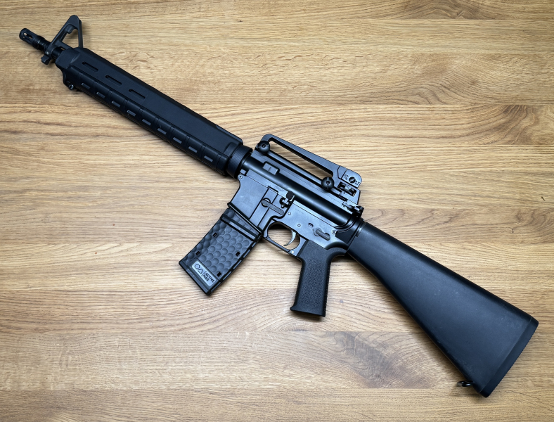 Ich liebe die Optik des Dissipators. Dazu ist die Waffe sehr wandlungsfähig. Mit A2-Vorderschaft ist sie ein Klassiker, mit Magpul-Teilen modern. Mit einer Optik kann man auch mit moderneren ARs mithalten, mit offener Visierung hat man die Visierlinie eines vollwertigen Gewehrs. Mit einem KAC RAS M5 habe ich mir mal einen „Kompakt M16A4 Klon“ aufgebaut (siehe letztes Bild, nur zur Inspiration!). Und noch dazu schießt sich das Ding sehr angenehm, ob mit SD oder ohne.
