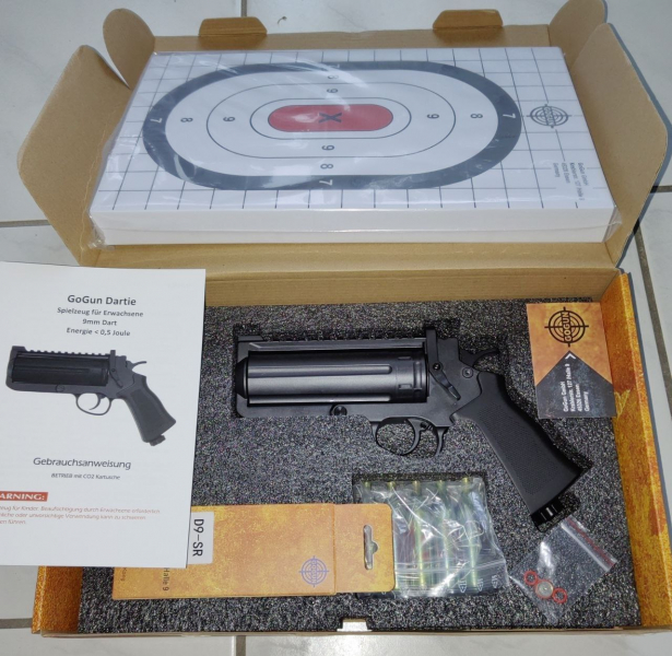 Angeboten wird von Fa. GoGun der Nadelrevolver Dartie für Spaß und Spiel.