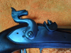 Sieht unbenutzt aus ,ist aber alles funktionsfähig. Der Hahn hat zwei Raststufen,die erste hält immer aber die zweite hält in den meisten Fällen erst bei mehrfachen Versuchen . Ein Bekannter und Schwarzpulver Schütze hat es mir versucht zu erklären. Er meinte man muss das Schloss ausbauen und an der Nuss die zweite Rast etwas nachfeilen. Also für Kenner etwas leichtes. Oben auf dem Lauf ist dieser mit Mauser und Lehrwerkstatt graviert. Schätze mal ein seltenes Stück das besonders für Sammler interessant sein könnte. Piston lässt sich leicht Schrauben und Lauf und Piston sind durchgängig. Lauf hat nach meiner Messung 13mm,bitte mich nicht auf Zehntel Millimeter festnageln. Ich habe nur eine einfache Messlehre.
