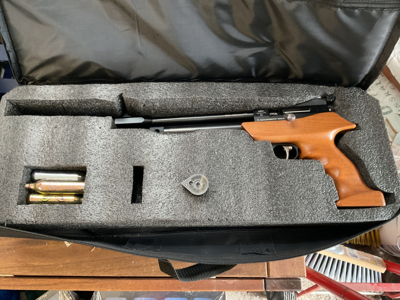 Kauf Ende September letzten Jahres und kaum benutzt (Griff für mich zu mächtig leider) . 5 CO2 Patronen wurden insgesamt verschossen, eine davon eine Wartungskapsel. Pistole besteht aus , Diana Airbug, 9 Schussmagazin , Einzelschusstray , Pistollentasche.