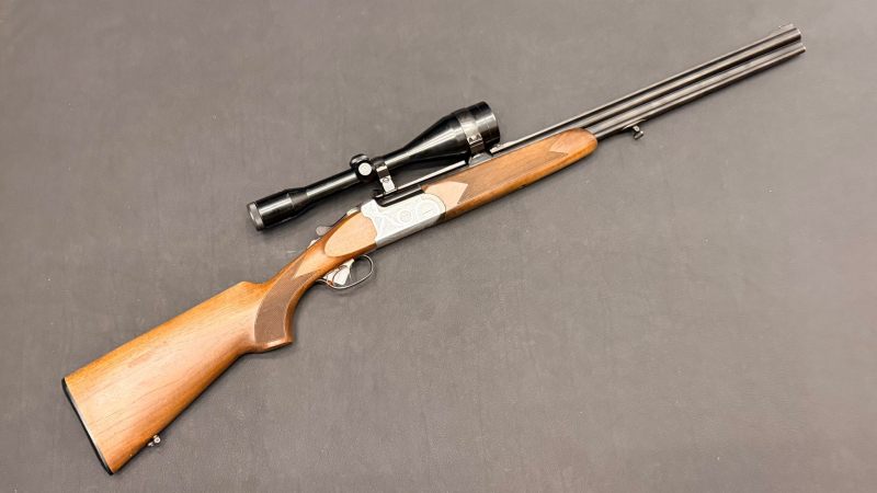 Klassische Bockbüchsflinte aus deutscher Fertigung im Kaliber 12/70 & 7×65R mit 65 cm Lauflänge. Der Verschluss schließt dicht, die Läufe sind innen spiegelblank. Ausgestattet mit deutschem Stecherabzug, Sicherungshebel und Riemenbügeln.