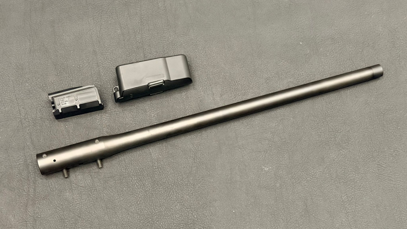 Der Lauf ist neu. Im Lieferumfang enthalten sind ein Magazineinsatz sowie eine Blaser R8 Magazinschachtabdeckung.