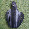 kleineres schwarzes Leder Holster für Pistolen von AKAH mit altersbedingten Gebrauchsspuren.