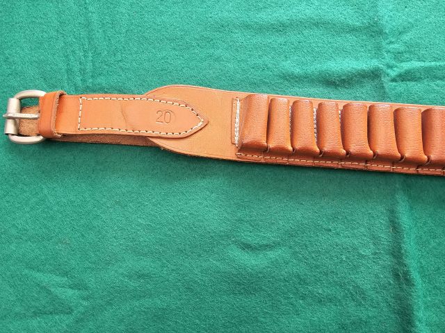 Patronengurt aus Schweinsleder, engl. Sattlerarbeit mit geschlossenen Schlaufen , handgenäht.