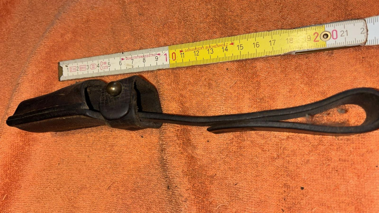Dieser Koppelschuh für das Not Bajonett ist meiner Meinung nach im guten altersentsprechendem Zustand, die Nähte sind in Ordnung.