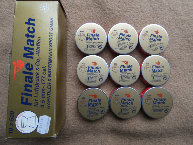 zum Verkauf stehen diese 9 Dosen Match Diabolo von H&N Finale-Match mit Kopfmaß 4.50mm im unbeschädigten und ungeöffneten Zustand.