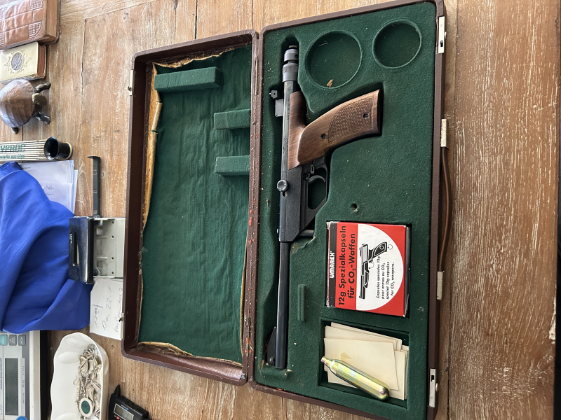 Zum Verkauf steht eine Hämmerli Mod. Single CO₂-Luftpistole aus Schweizer Fertigung.