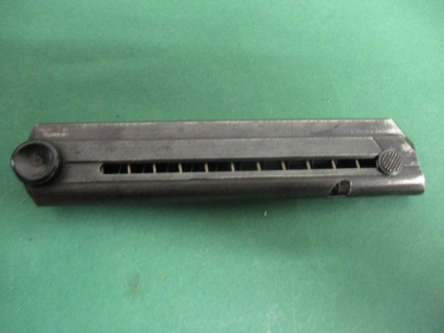 Angeboten wird ein sehr gut erhaltenes Magazin für die P 08 mit Treppenfeder , sog. gefräßtes MGZ . Garantiert bessere Zuführung . fxo gestempelt .