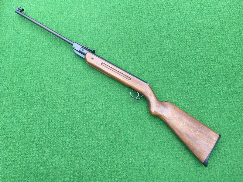 Hier kaufen Sie ein altes Diana Weitschußluftgewehr Modell 35 ohne F-Zeichen, Kaliber 4,5mm. Ohne Jahresprägung, Fertigungszeitraum 60-er Jahren , jedenfalls bevor 1967 (Anfang der Jahresprägungen). Metallabzug.